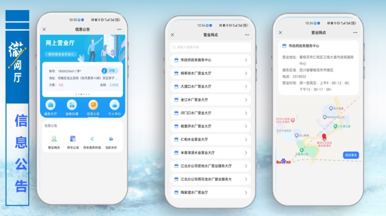 新年伊始,攀枝花市水務集團便民服務再添新舉措,“微信營業(yè)廳”(以下簡稱“微網廳”)正式開通運行,用戶只需關注二維碼,動動手指就可以在“微信營業(yè)廳”辦理水費繳納、用水報裝、更名過戶、信息查詢等各項用水業(yè)務,為您提供更加專業(yè)、高效的優(yōu)質服務,實現(xiàn)辦事“免跑腿”、溝通“零距離”。下面,跟隨小編一起去看看“微網廳”的操作流程吧!