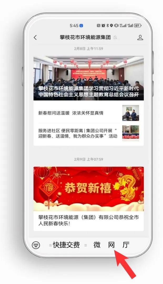 進入攀枝花市環(huán)境能源集團微信公眾號,點擊屏幕下方“微網廳”。