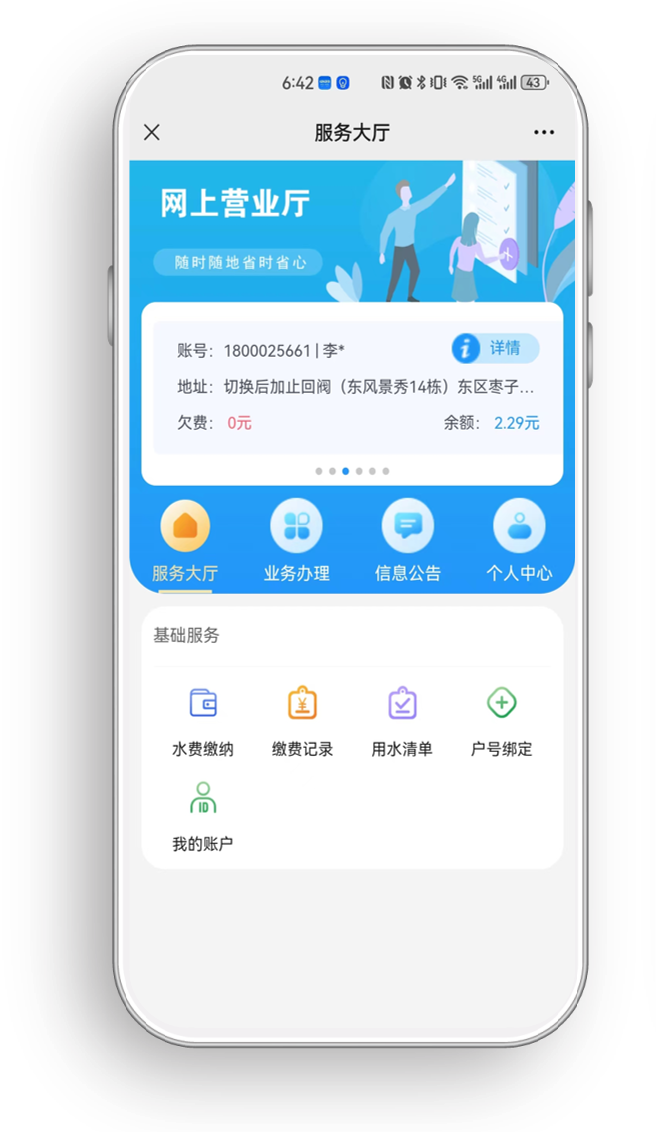 信息公告模塊對公司營業(yè)網點,停水通知,服務熱線等信息進行公開發(fā)布,后期我們將持續(xù)進行更新。